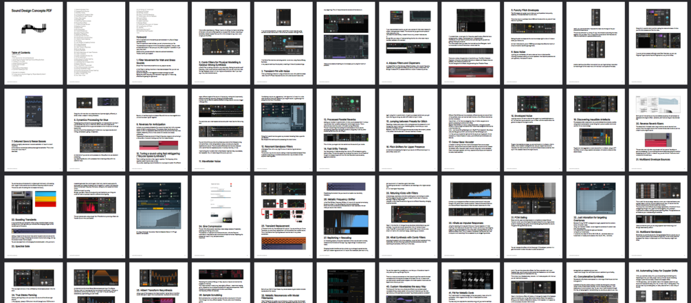A concise pdf summary of all 65 Techniques from my "Sound Design Concepts" Series, intended as a companion to the video series or as a standalone read.
